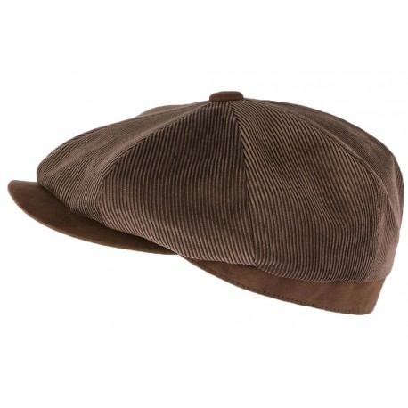 Casquette gavroche homme et femme couleur marron visière cuir référence Sandvik Brown collection Aussie Apparel, casquette Gatsby marron forme retro Irlandaise en velours marron mode tendance, doublure marron classe.