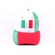 Casquette Strapback Italie Blanche Rouge Verte. Bandeau vert sur la visière rouge et le bord de la casquette blanche où est écrit Italie en blanc. Drapeau italien surplombant la visière. Casquette parfaite pour les aficionados des équipes de sport italien, pays très foot.