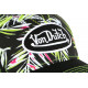 Trouvez une casquette baseball Von Dutch noire fleurs vertes et roses look tropical référence Ahig Black, casquette filet homme et femme fashion patch Von Dutch brodé 3D en noir et blanc, visière courbe surpiquée jaune fluo dessous fluo.