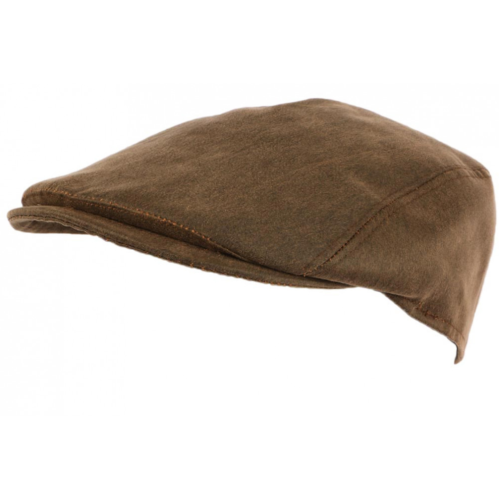 Trouvez une casquette huilée marron homme et femme imperméable collection HG, casquette plate en coton wax effet cuir souple et légère, visière courbée tendance, intérieur doublé en toile matelassée finition chapelière, fabrication italienne .