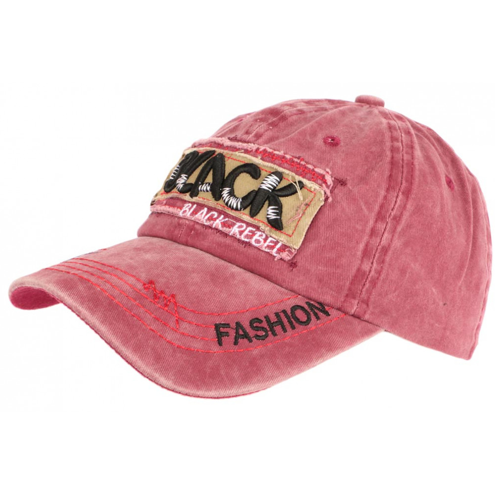 Trouver une casquette baseball retro rouge logo Black Rebel fashion présentée par Leon Montane, casquette baseball homme et femme tendance et stylée en tissu qualité pur coton, visière curve surpiquée rouge vif fun, broderie Black noir couture 3D, taille réglable.