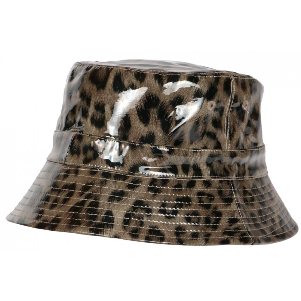 Vente en ligne chapeau bob de pluie beige et noir classe et tendance collection Nyls Création modèle Earth Leora, bob chapeau pluie femme et homme original style léopard, doublure tissu coton noir confortable, bande intérieure de maintien. Taille unique.
