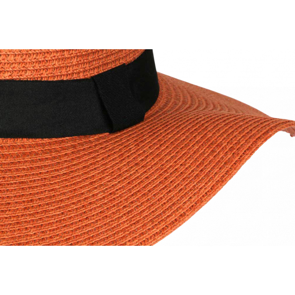 Vente en ligne de la capeline femme orange en paille papier avec large bord souple. Ce chapeau paille femme lumineux est parfait pour l’été, la plage et un style élégant sous le soleil.