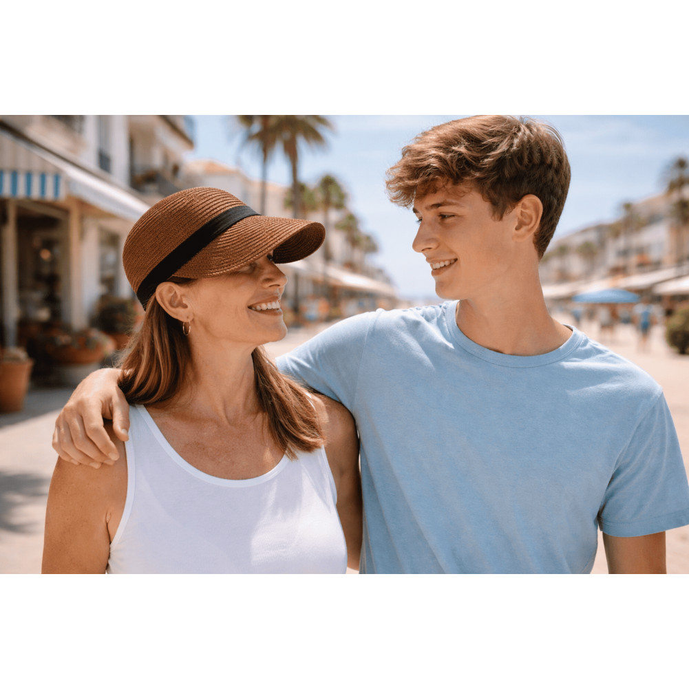 Sa visière intégrée assure une protection efficace contre le soleil. Elle protège le visage et les yeux tout en conservant une bonne visibilité, ce qui rend cette casquette femme été marron foncé idéale pour les activités extérieures comme la plage, les balades ou les voyages.