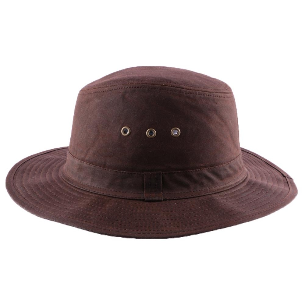 Chapeau coton huilé marron homme et femme type Brousse référence Travys Brown collection Léon Montane, chapeau marron imperméable en coton Wax, doublé tissu noir et toile enduite Finistère, fabrication en Europe.