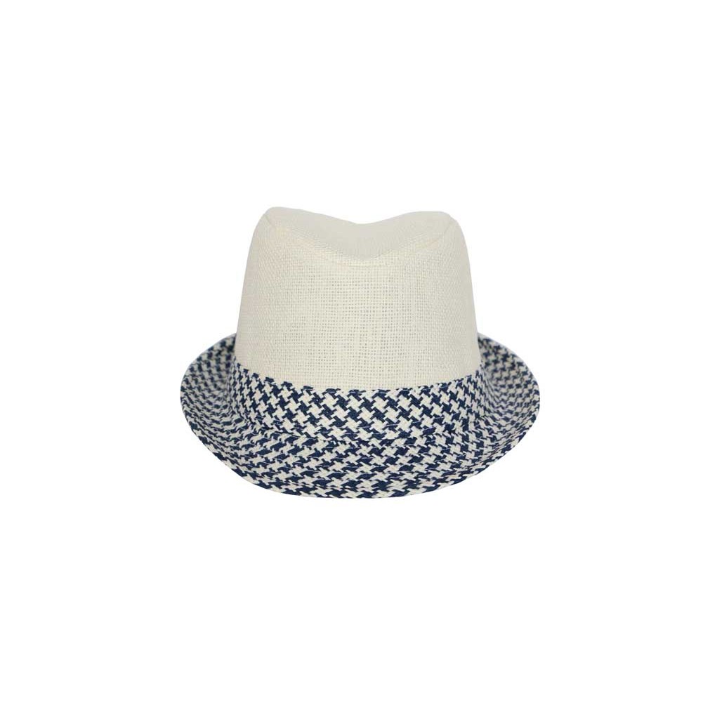 Chapeau de forme trilby confectionné en paille de papier, bicolore beige et bleu. La calotte de ce chapeau est beige avec la ceinture bleu et beige, la lame du trilby est originale puisque bicolore également. Un chapeau aux allures sport mais aussi estivales, qui vous suivra sur les plages, dans vos vacances ou sur les parcours de golf, de marche et autres. Un chapeau de la marque Nyls Création.
