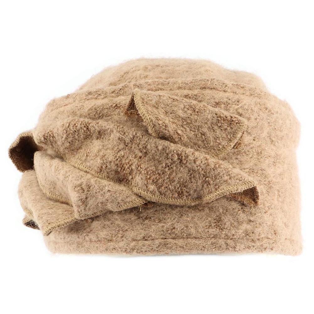 Bonnet toque en laine bouillie marron camel orné de fleurs référence Bilba collection Léon Montane, beret bonnet femme fantaisie pour un hiver élégant.