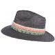 Chapeau de paille femme gris anthracite avec ceinture fantaisie bleu turquoise et rose, fedora paille pour été classe et chic Solya par Léon Montane