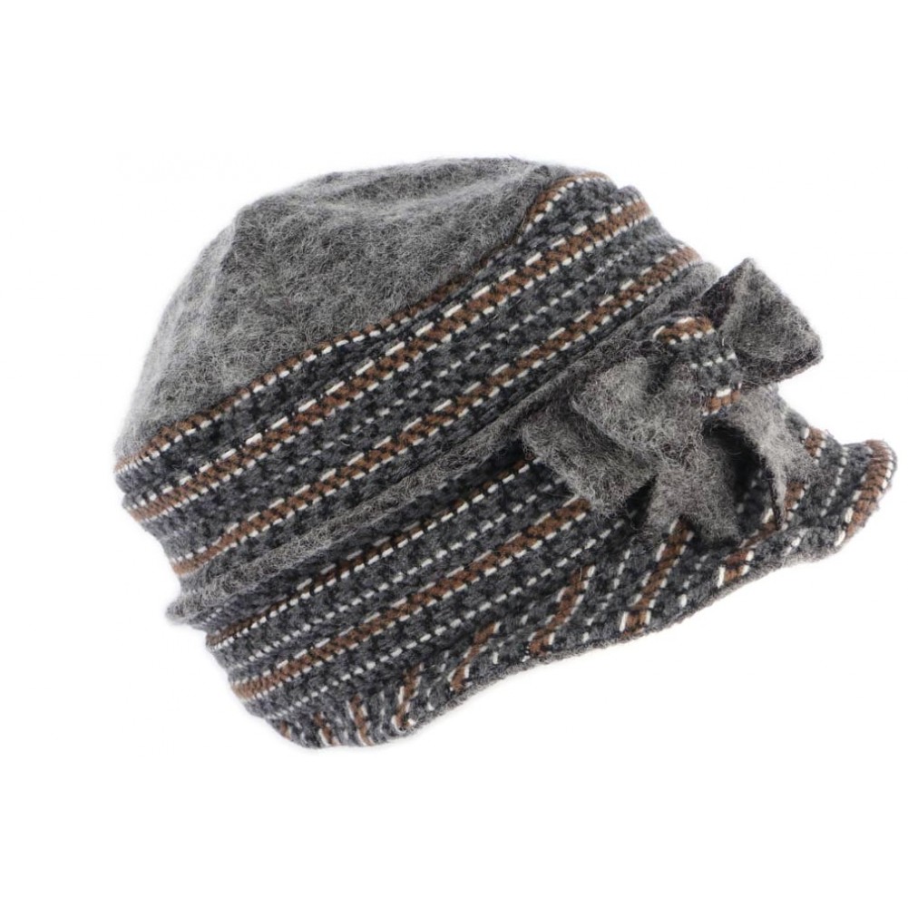 Acheter un chapeau gris femme en laine bouillie modèle Célia Grey marque Léon Montane forme cloche chaud et vintage, jolie toque bonnet femme retro style Hiver élégant coloris gris, beige et marron