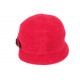 Acheter un béret femme rouge pas cher en forme de cloche vintage et en laine acrylique mélangée référence Red Chacy de marque Léon Montane, joli chapeau cloche hiver confort et chaud agrémenté d'une fleur ornée de plumes classe, doublure noire, taille femme ajustable par lacet intérieur.