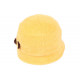 Portez un béret femme jaune pas cher forme de toque hiver rétro proposé en laine acrylique mélangée modèle Yellow Chacy sélection Léon Montane, chapeau cloche jaune hiver tendance et coloré agrémenté d'une fleur aux plumes vaporeuses, doublure noire, taille femme ajustable par lacet intérieur.