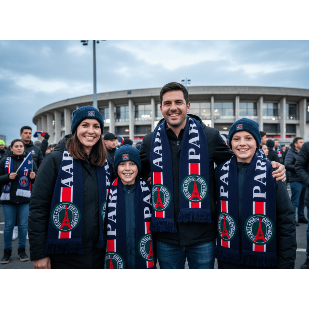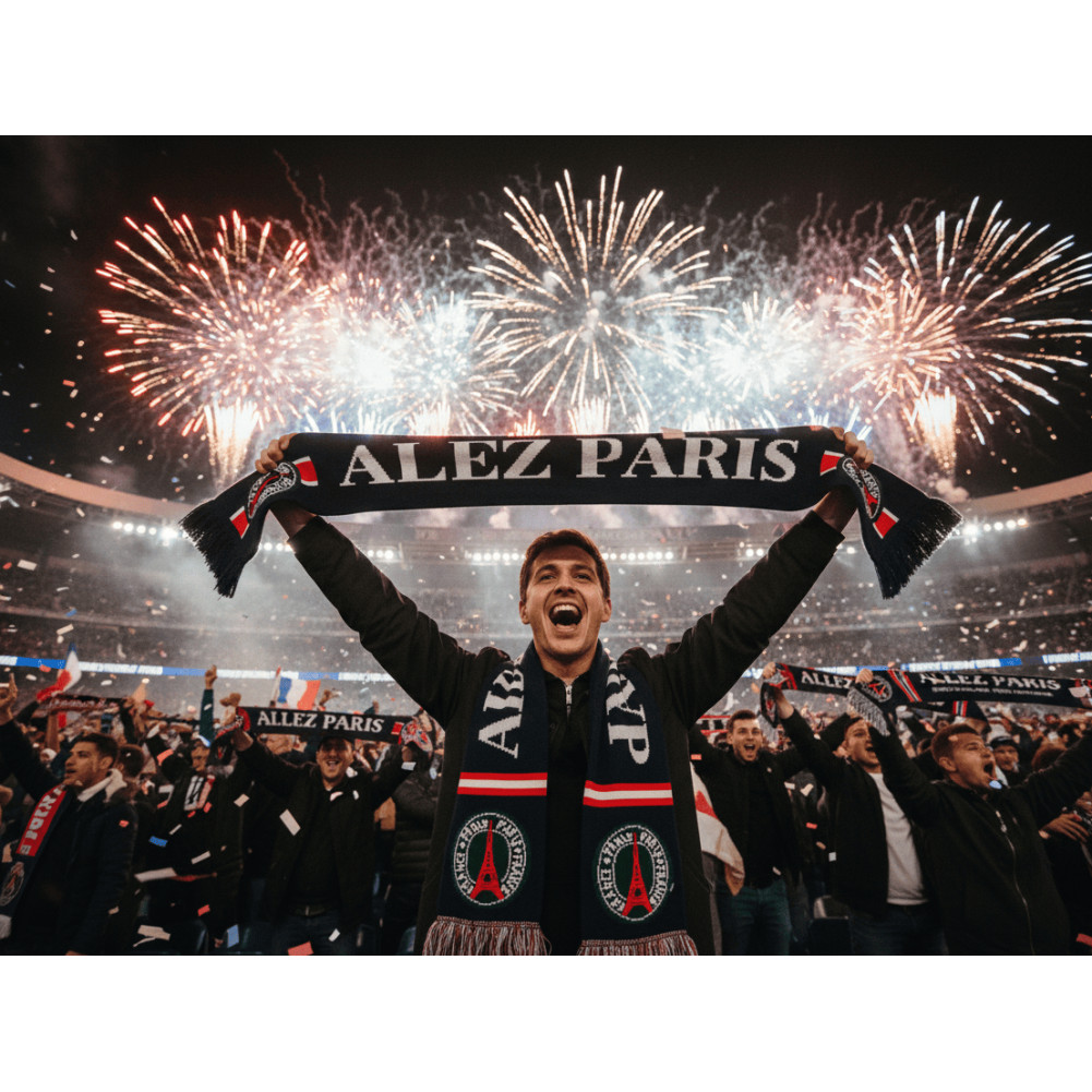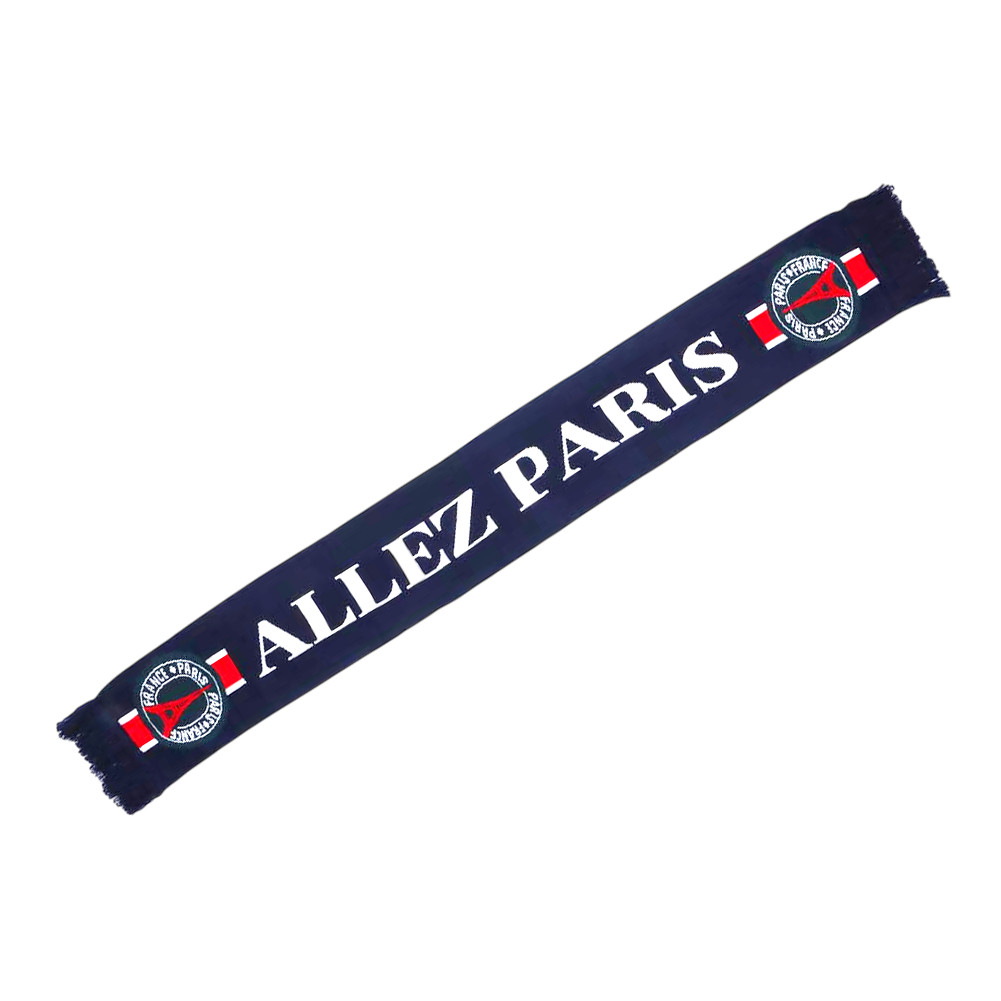 L'Écharpe "Paris Allez Paris" est un accessoire fort qui incarne la passion pour l'équipe qui fait vibrer la ville lumière. Conçue pour l'ambiance des grands soirs au Parc des Princes, elle est votre meilleure alliée pour soutenir votre équipe favorite lors des rencontres de Championnat de France et au-delà.