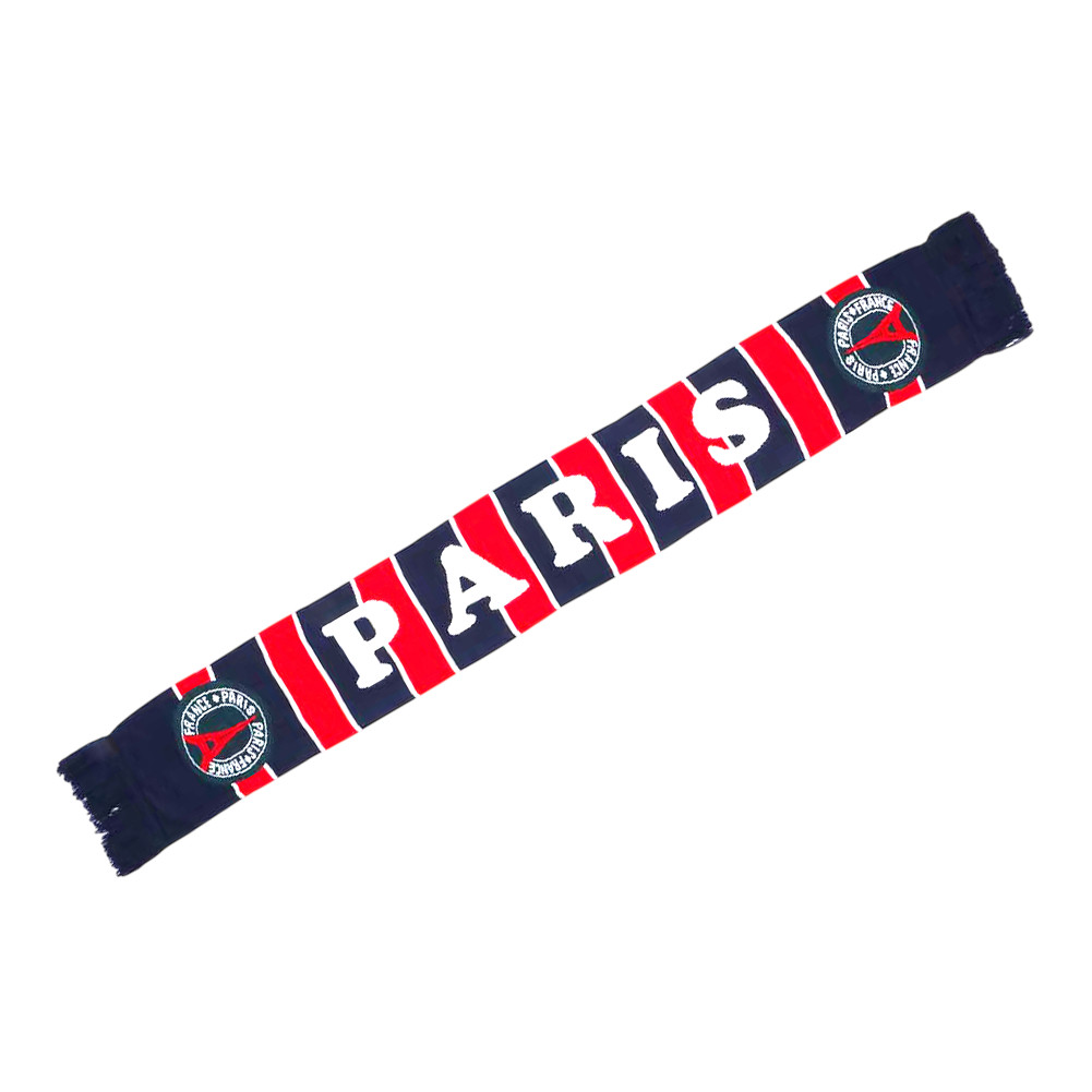Vibrez au rythme de la Ville Lumière avec cette écharpe Paris supporter ! Elle arbore "PARIS" en lettres capitales, séparé par de bandes rouges et blanches sur un fond bleu marine. La Tour Eiffel stylisée en rouge aux extrémités finalise ce design puissant. L'accessoire pour les fans de foot à Paris. Ses couleurs iconiques et son design marquant vous garantissent un look de supporter parfait.