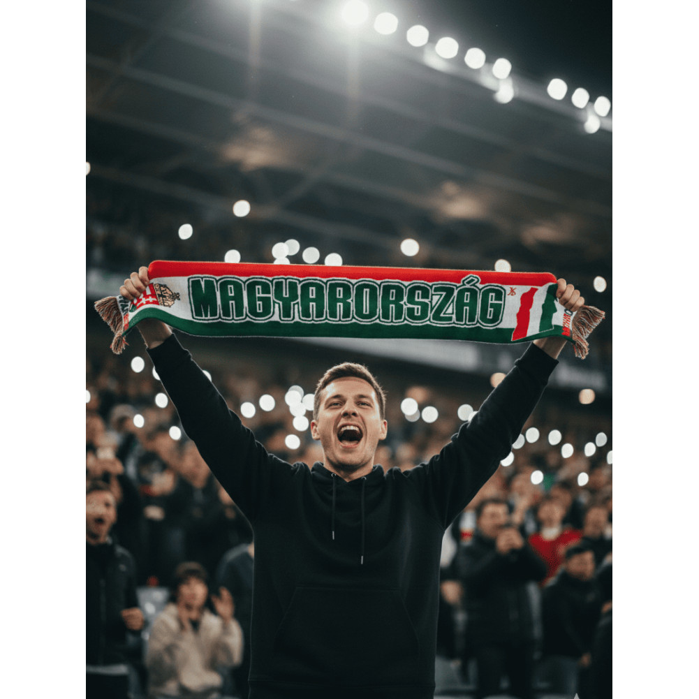 Identité Forte : L'inscription "MAGYARORSZÁG" s'affiche en grands caractères dynamiques sur les deux faces pour une visibilité optimale.