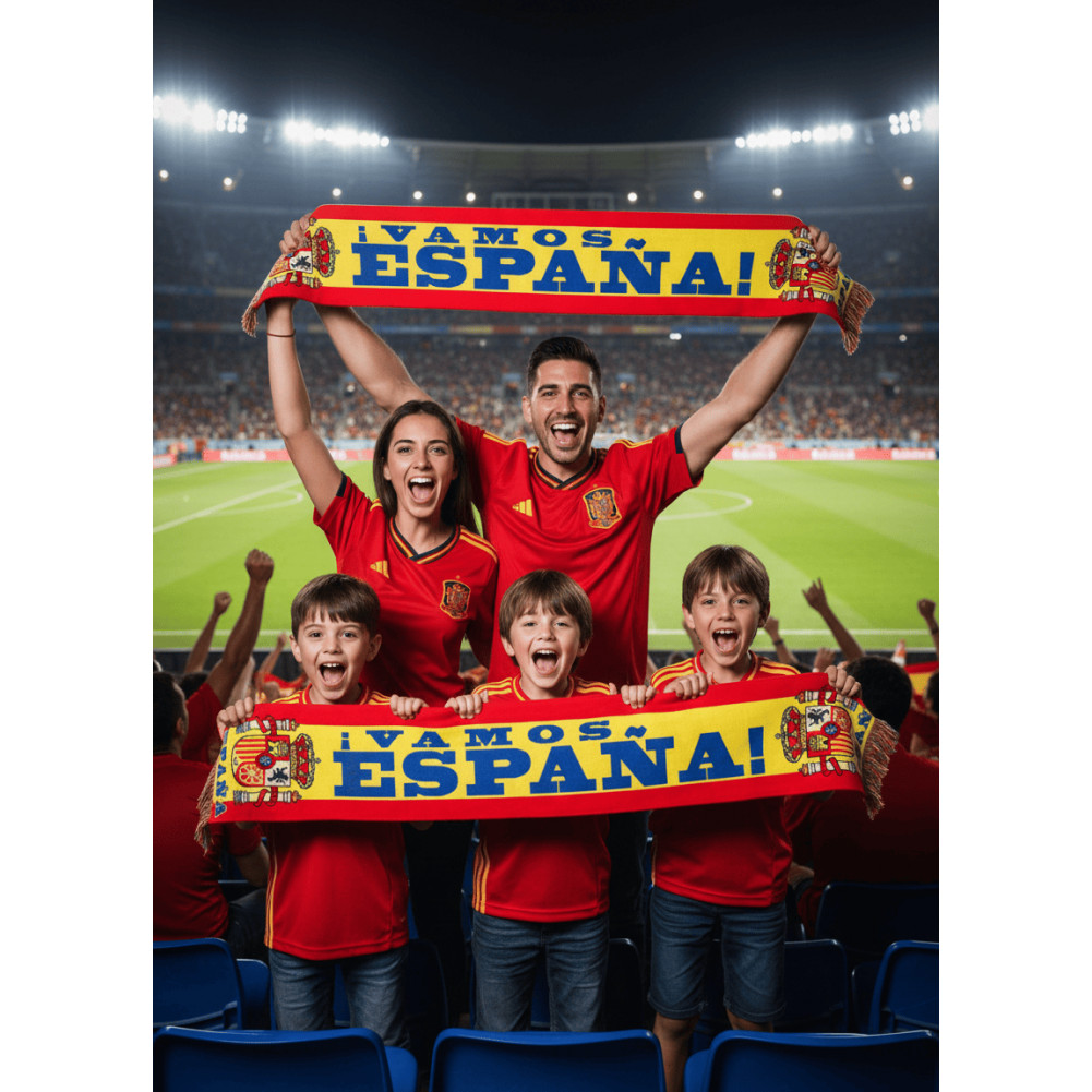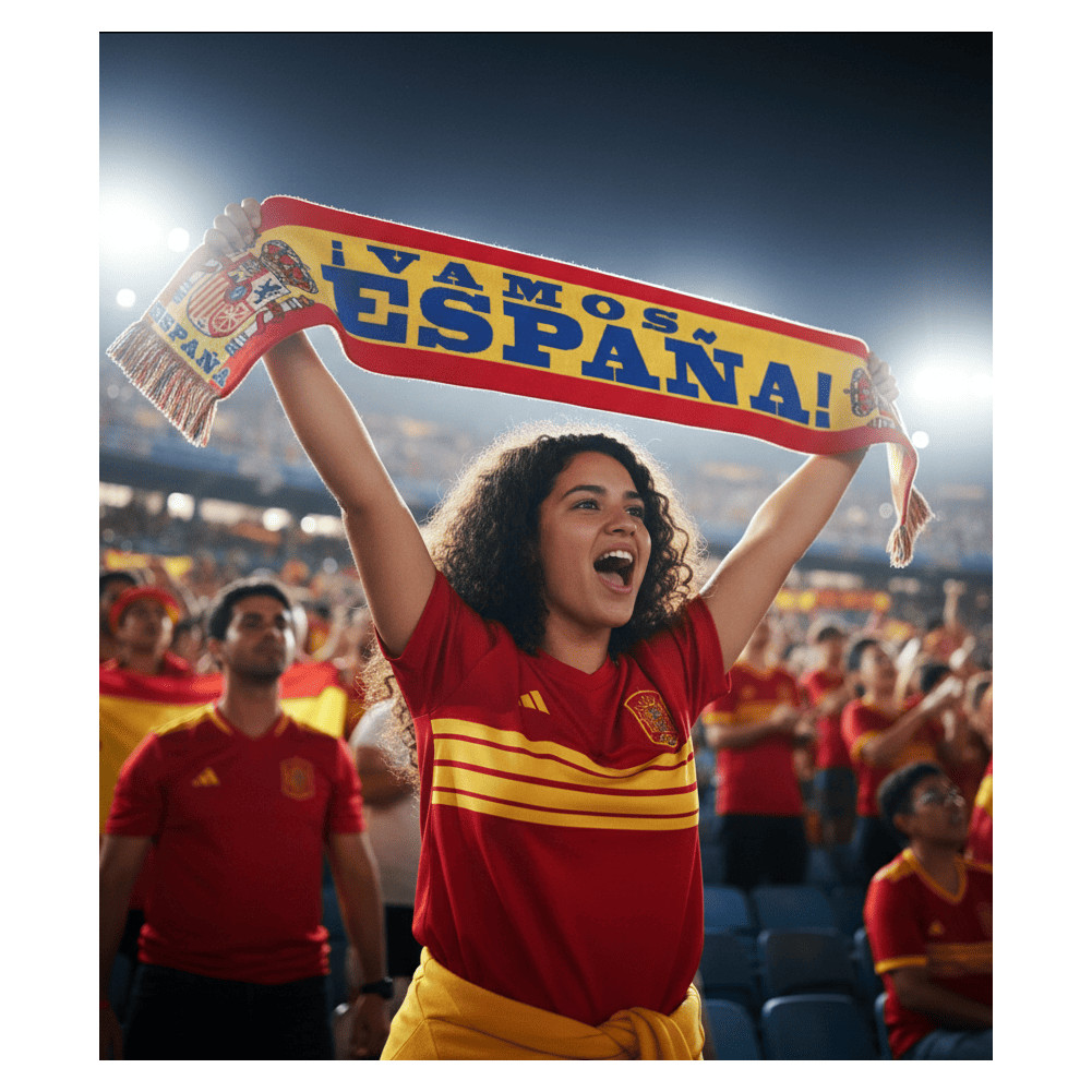 Identité Forte : L'inscription "ESPAÑA" s'affiche en grands caractères dynamiques pour une visibilité optimale dans les tribunes.