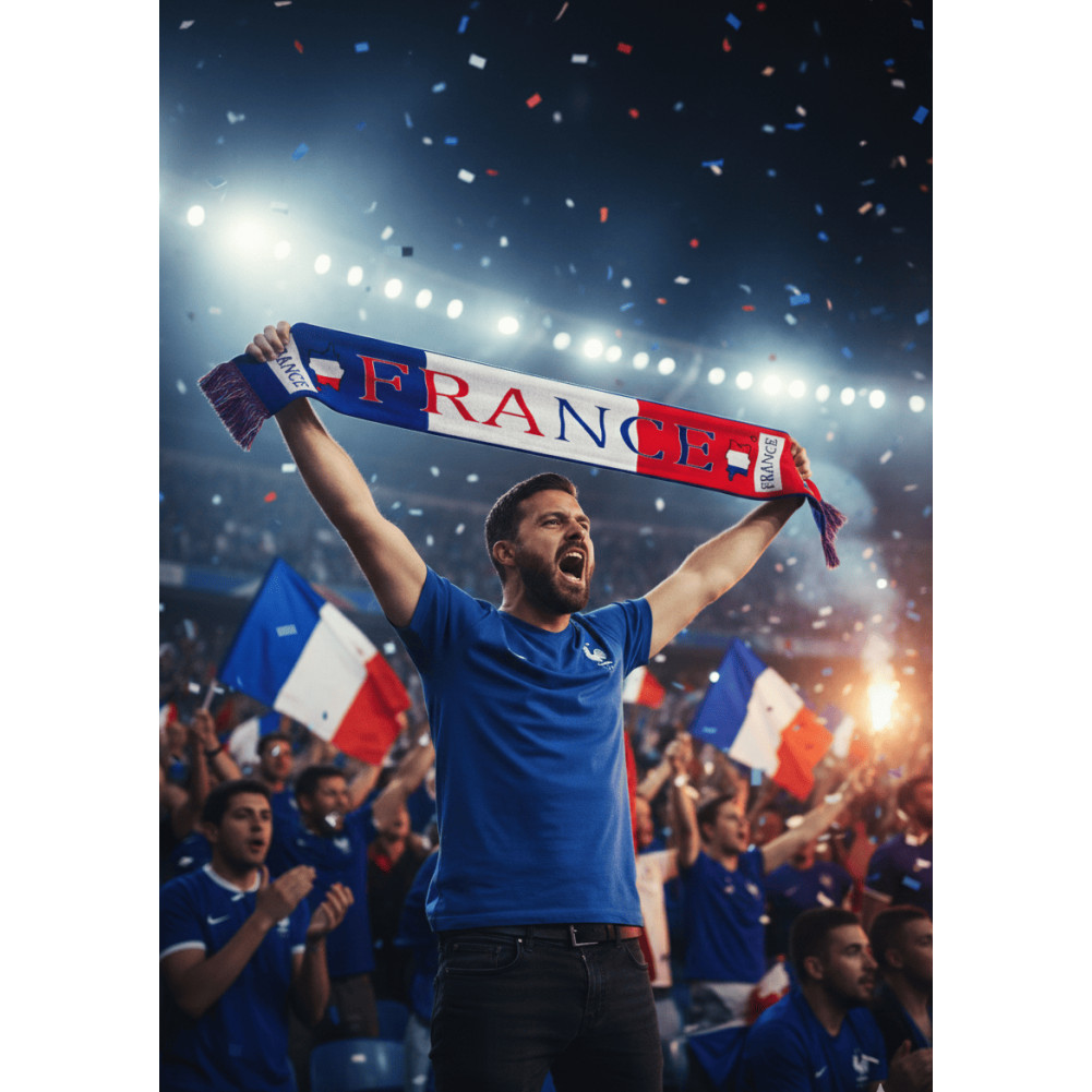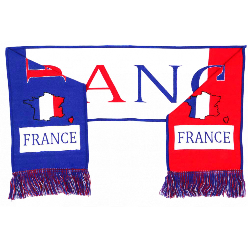 Lettrage Haute Définition : L'inscription "FRANCE" traverse l'écharpe en lettres capitales, utilisant un contraste fort pour être lisible même de loin.
