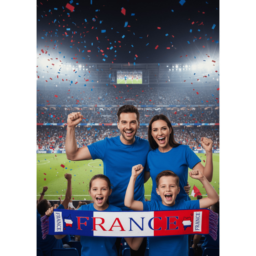 Affichez fièrement vos couleurs avec cette écharpe France de 140x20 cm. Conçue en maille acrylique résistante et douce, cette écharpe supporter français arbore un design tricolore avec l'inscription "FRANCE" contrastée. Un indispensable pour tous les supporters souhaitant porter le drapeau national lors des matchs ou en tribune. Confortable, chaude et 100% dédiée aux fans des Bleus.