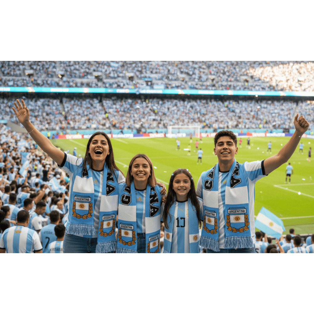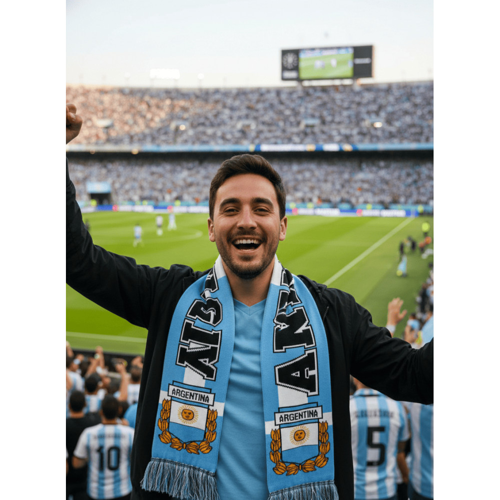 Affichez votre passion pour l'Albiceleste avec cette écharpe Argentine grand format (170 x 20 cm). Conçue en maille acrylique douce et ultra-confortable, cette écharpe supporter argentin est parfaite pour les supporters au stade. Son design double face arbore les célèbres bandes bleu ciel et blanc ainsi que le soleil de mai. Un indispensable pour tout fan cherchant style, chaleur et authenticité.