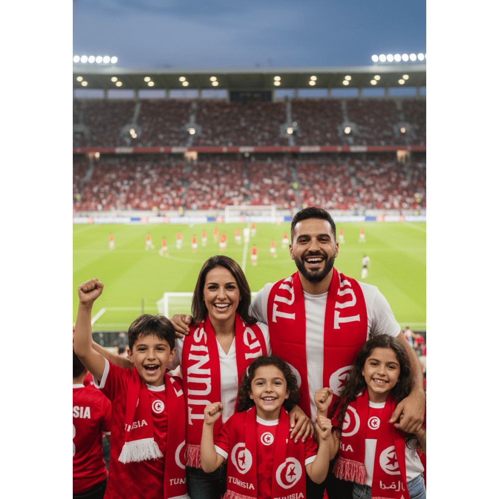 L'ACCESSOIRE INDISPENSABLE POUR LES FANS DE LA TUNISIE Portez fièrement vos couleurs avec cette écharpe de supporter de la Tunisie. Que vous soyez au stade pour un match international, en fan zone ou pour afficher vos racines au quotidien, cet accessoire est le symbole de ralliement par excellence. Sa longueur de 170 cm offre un confort parfait, permettant de la draper facilement ou de la brandir à bout de bras pour encourager la sélection nationale.