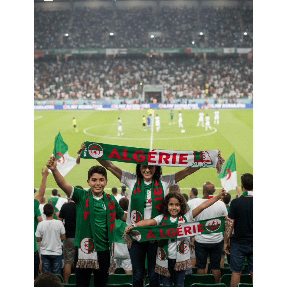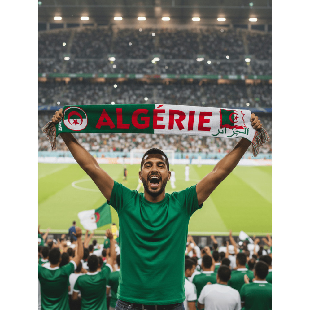 Symbolique Forte : L'écharpe intègre le Croissant et l'Étoile rouge, emblèmes centraux du drapeau algérien, symbolisant la lumière et la souveraineté.