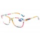 Lunettes Loupes de la marque New Time modèle Azza, ces lunettes de lectures ont une correction de dioptrie +2. Elles ont une monture multicolors Rouge jaune et Bleu. Norme CE et NF EN 14139 livrée dans une housse tissu.