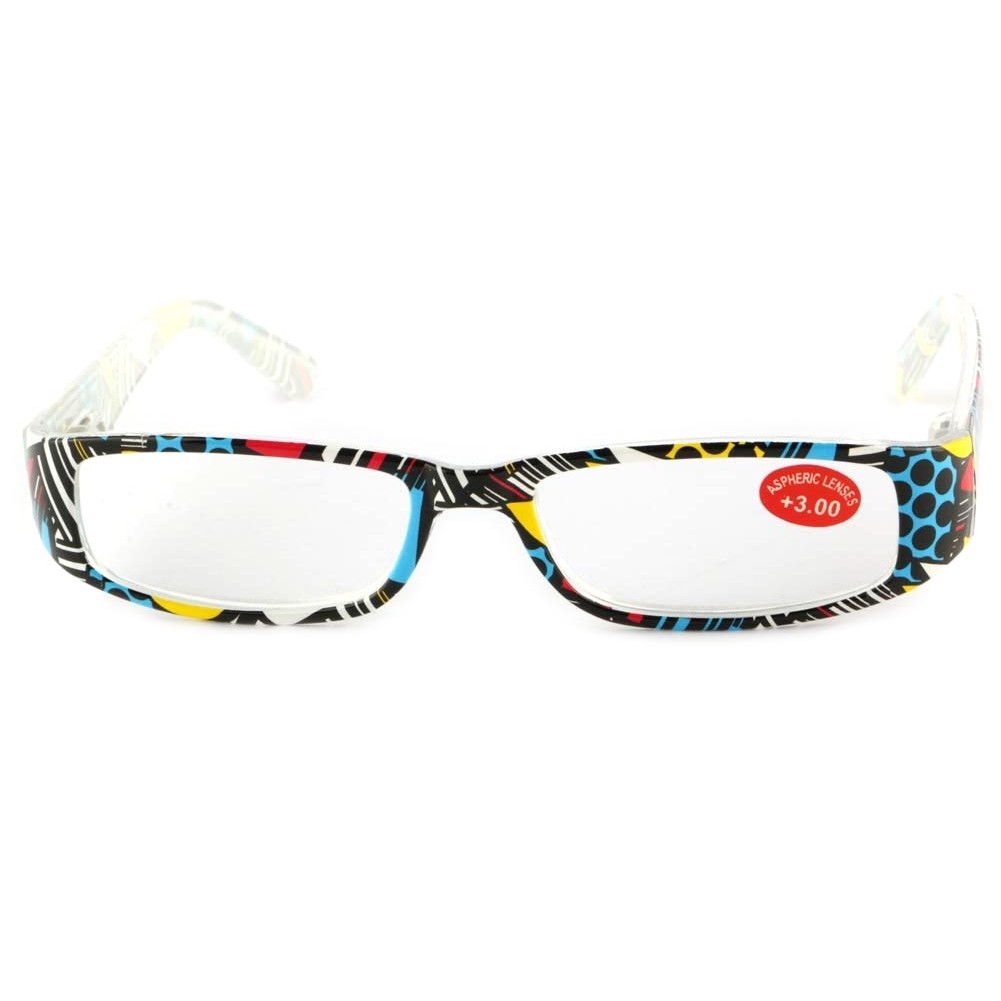 Lunettes de lecture tendances de la marque New Time Modèle Pop, ces lunettes loupe femme et homme offrent une monture pop art avec du bleu, du jaune et du noir. Ces lunettes pharmacie pas cher ont une correction de dioptrie+1,50. Norme CE et NF EN 14139