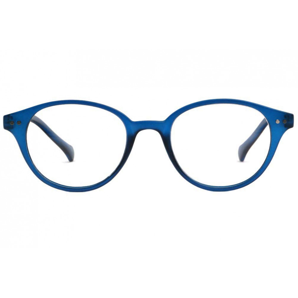 Trouver des lunettes loupe rondes bleu marine translucide monture pour presbyte lumineuse et confortable avec charnières ressort souples, lunettes de lecture homme et femme tendance et qualité modèle Blavy Blue sélection Loupea.