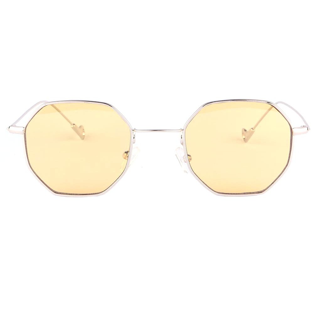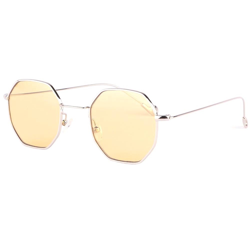 Lunette soleil octogonale femme et homme Ocha marque Soleyl, lunette de soleil jaune monture argentée allure fantaisie et mode.