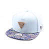 Choisir en ligne une Casquette baseball blanche imprimé de fleurs bleues exotiques modèle Sky Phuket création Hip Hop Honour, casquette NY homme et femme design tropical été tendance et fantaisie, broderie NY blanche en relief, visière curve tendance avec sticker New York Original, taille réglable.