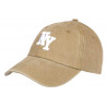 Vente casquette New York beige lumineux en tissu coton souple et confortable référence Sand Broadwyx de marque Hip Hop Honour, casquette NY homme et femme classe, visière arrondie chic dessous noir, broderie NY beige liseré noir en relief, sticker NY Original rond gris et noir, taille réglable.