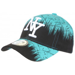 Achetez une casquette baseball turquoise au print streetwear esprit tags noirs style original, casquette NY femme et homme tendance graphisme fantaisie référence Sky Bad Jungle collection Hip Hop Honour, visière ronde chic, NY blanc 3D, autocollant New York Original, taille ajustable.