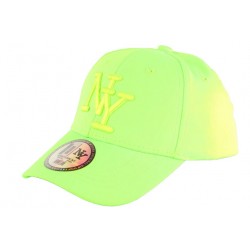 Casquette NY Enfant vert fluo tendance référence Styz Green sélection Hip Hop Honour, casquette baseball enfant fille et garçon allure été flashy avec visière arrondie fashion et sticker NY Official Brand, taille de 7 à 11 ans