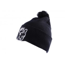 Bonnet à Pompon New York NY couleur Noir Lettres Rouge
