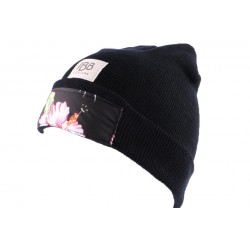 Bonnet JBB Couture Noir avec revers et impression feuille verte