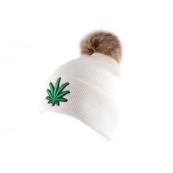 Bonnet Nyls Création Blanc avec pompon et feuille