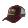 Casquette NY rouge bordeaux en coton effet daim modèle Stally marque Hip Hop Honour look vintage chic, casquette baseball homme et femme avec patch New York bordeaux, visière curve.