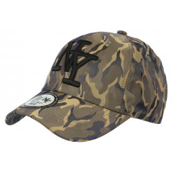 Chercher une Casquette baseball camouflage vert kaki, marron et noire fashion modèle Kaptyn War de marque Hip Hop Honour, casquette NY homme et femme design militaire armée tendance été streetwear, logo NY brodé blanc, visière curve mode.