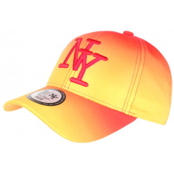 Vente Casquette NY Enfant orange en dégradé jaune originale et lumineuse référence Sun Renbo sélection Hip Hop Honour, casquette garçon et fille pas cher fantaisie et fashion, visière ronde mode, broderie NY orange en relief, autocollant New York Original noir et gris, taille de 7 à 11 ans