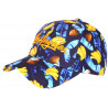 Vente casquette NY Enfant jaune et bleue fantaisie print tropical plage et tranche d'agrumes avec visière ronde référence Lemon Summer Time création Hip Hop Honour, casquette baseball enfant NY originale coloris fashion pour fille et garçon de 7 à 11 Ans, autocollant New York Original argent, NY brodé blanc en 3D, taille réglable.
