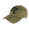 Casquette biker camouflage vert armée brodée tête d'aigle dans un drapeau américain, casquette baseball homme et femme avec visière arrondie avec broderie USA dans des branches de lauriers dorées style motard et hotroad par Nyls Creation